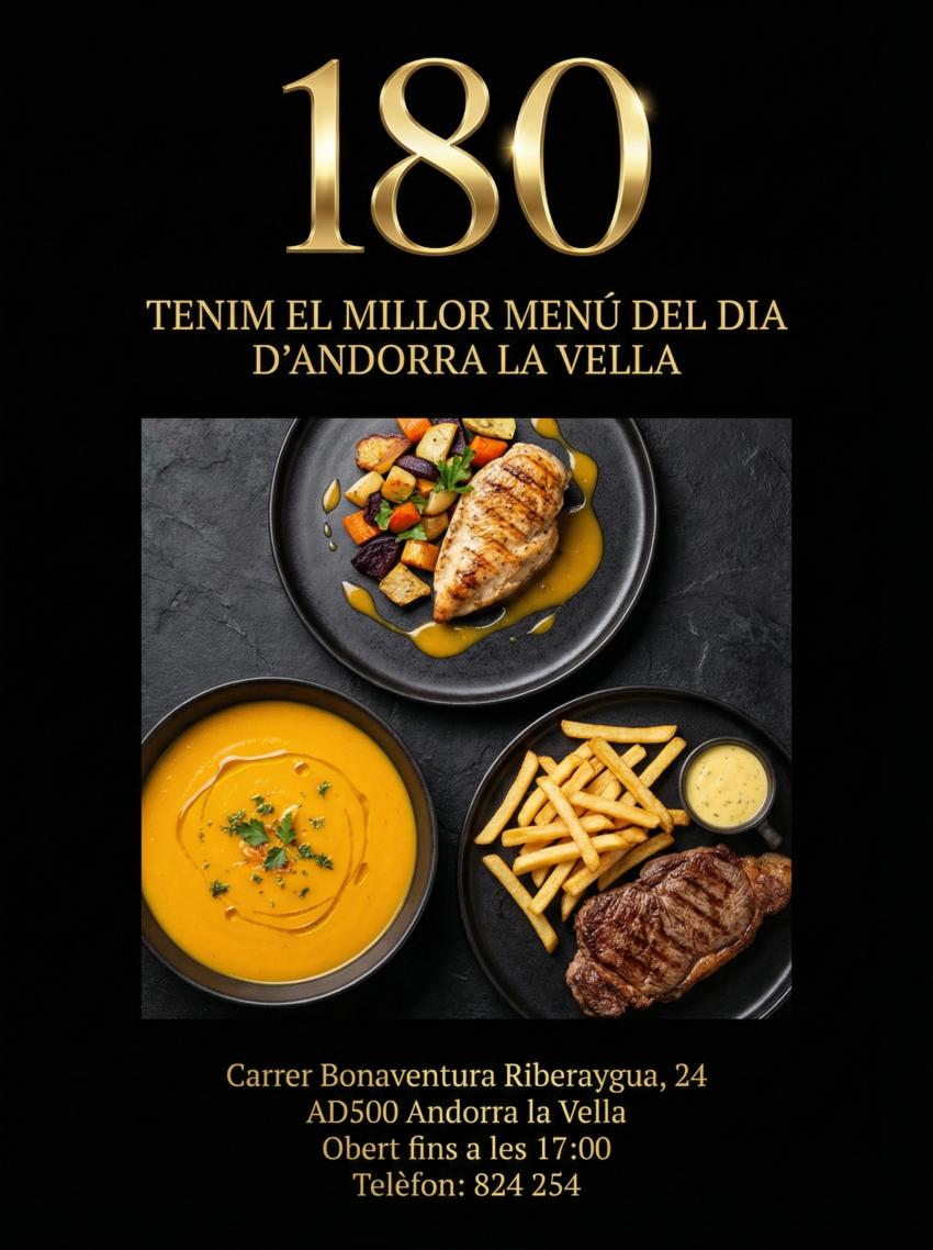 Al Restaurant 180 t’esperem amb un menú del dia complet més econòmic per només 18,50 € i sí, amb cafè inclòs. Possiblement el millor menú del dia d’Andorra la Vella.